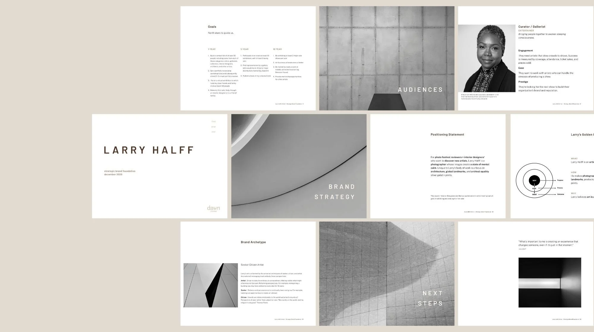 Dawn Creative provided brand strategy services to help Larry define his vision and develop a story to confidently network within the often intimidating fine art community.